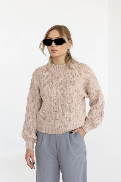 Объемный укороченный джемпер из мягкой уютной шерстяной пряжи. Джемпер - модель оверсайз, перед выполнен объёмной вязкой "фактурные косы". Ворот, манжеты и пояс джемпера вывязаны резинкой. Тренд осени и изюминка этого джемпера - объёмные рукава - ты оценишь по достоинству! Носи с классическими брюками, брюками-палаццо, джинсами, юбками-плиссе и шортами. Идеально подходит для повседневной носки. Приятный к телу и легкий в уходе, после стирки - не линяет, не изменяет форму.