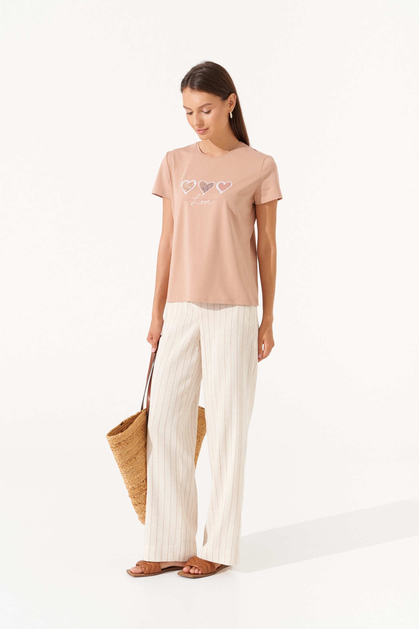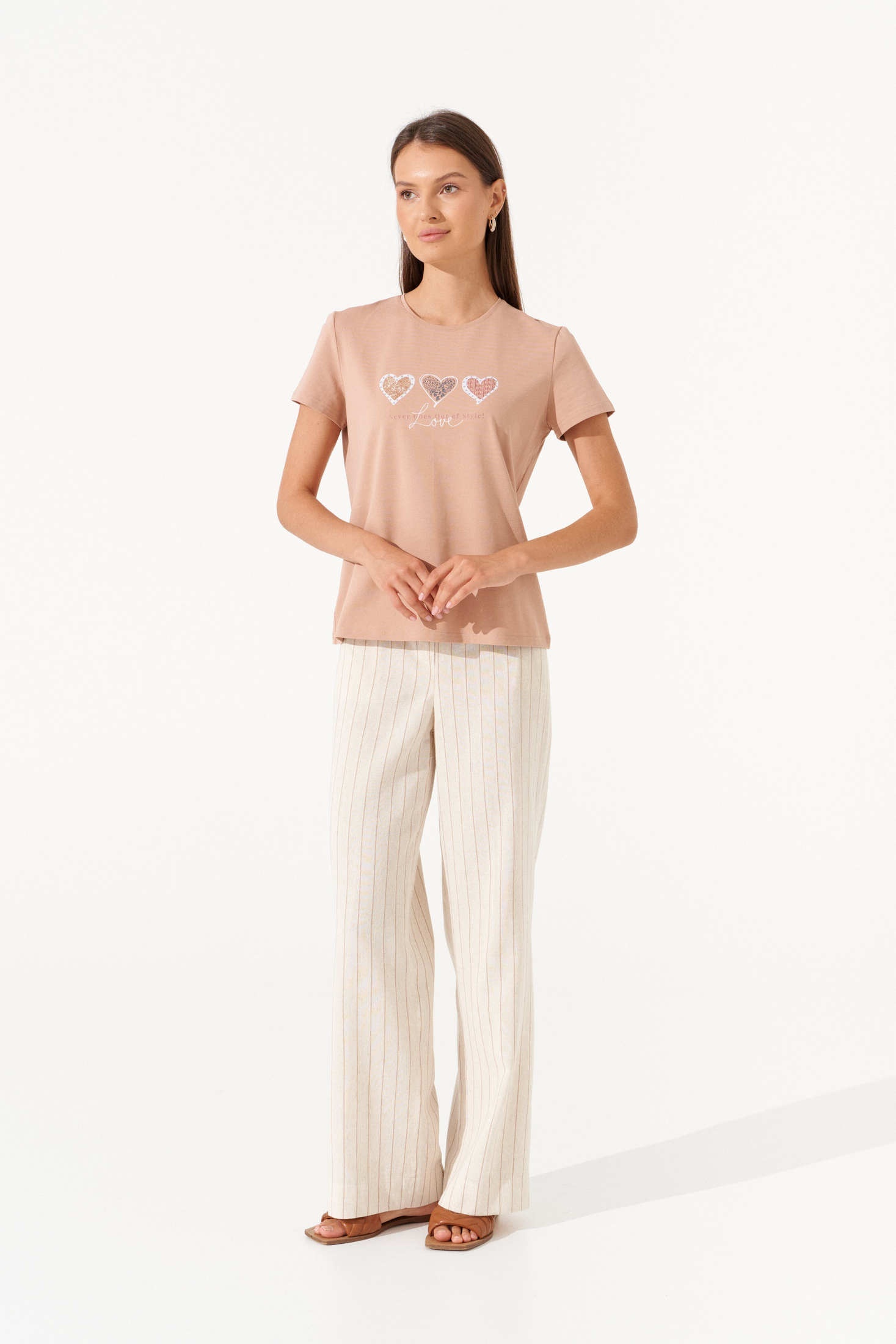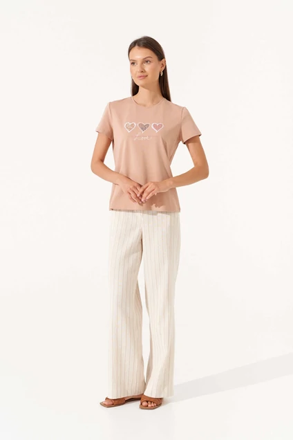Джемпер РП0129-ХЛ4 капучино Romgil – это идеальное дополнение вашего гардероба. Коллекция бренда Romgil предлагает джемпер из мягкого хлопка, который отличается комфортом в каждом носке. С короткими рукавами и круглым вырезом, этот джемпер украшен оригинальным принтом с сердечками, что добавляет женственности и игривости в повседневные образы. Цвет изделия, капучино, легко сочетается с другими вещами, делая его универсальным выбором для весенне-летнего сезона. Благодаря своему нежному материалу и легкому фасону, он идеально подходит для ежедневной носки, комбинируясь с брюками, юбками или шортами.