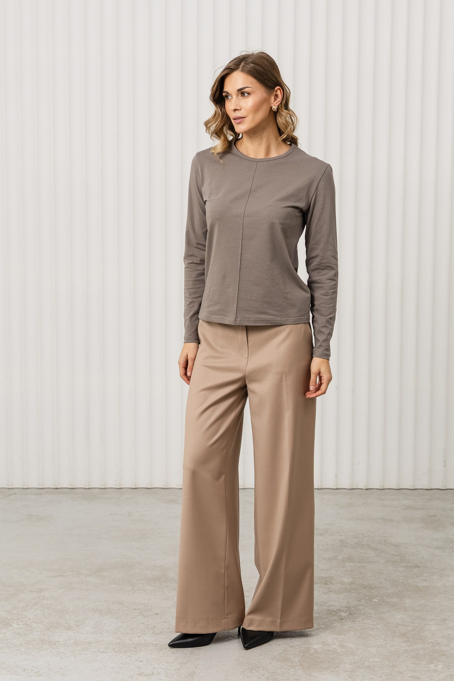 С чем носить: джемпер отлично сочетается с брюками классического кроя, как на фото, юбками-карандаш или джинсами. Для завершения образа подойдут туфли на каблуке, лодочки или балетки. Дополните образ минималистичными аксессуарами, такими как серьги или тонкий браслет.