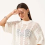 Этот элегантный вязаный джемпер с короткими рукавами и круглым вырезом станет изысканным дополнением вашего гардероба. Выполненный из мягкой пряжи с ажурным узором, он идеально сочетается с любыми брюками или юбками. Джемпер подчеркивает женственность и стиль, благодаря своему уникальному дизайну и высокому качеству материала.