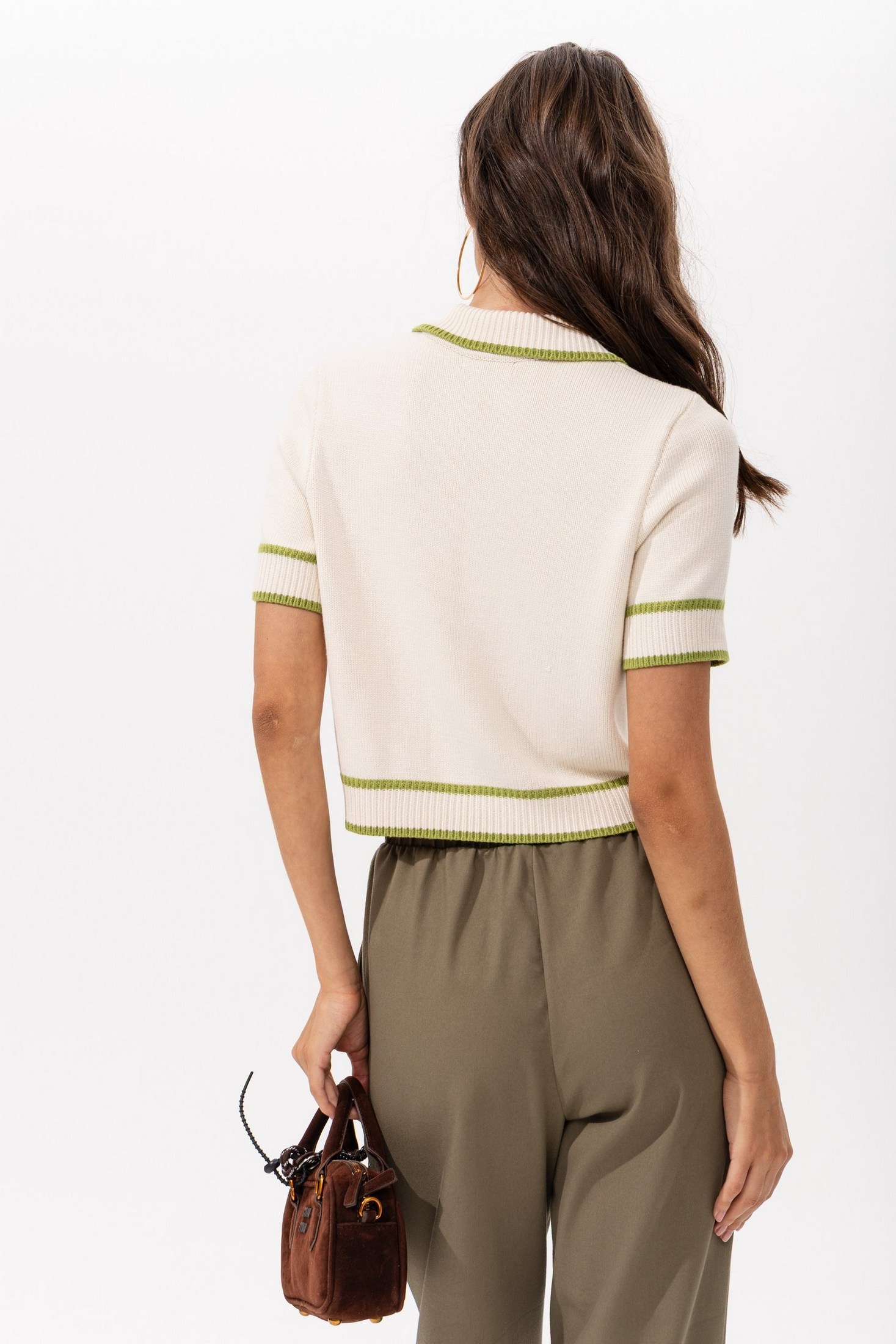 Джемпер РВ0405-ВИ4 молочный от Romgil — это стильный элемент вашего гардероба. Коллекция бренда Romgil представляет этот топ из мягкого трикотажа, обеспечивающего комфорт и лёгкость движений. Воротник-поло и контрастные зелёные полоски на молочном фоне придают ему свежий и оригинальный вид. Слегка укороченная длина и короткие рукава делают его подходящим для тёплой весны и лета. Универсальность модели позволяет сочетать её с брюками, юбками или джинсами, подходя как для повседневных, так и для стильных образов. Молочный цвет с зелёными акцентами — модное сочетание, которое подчеркнёт вашу индивидуальность.
