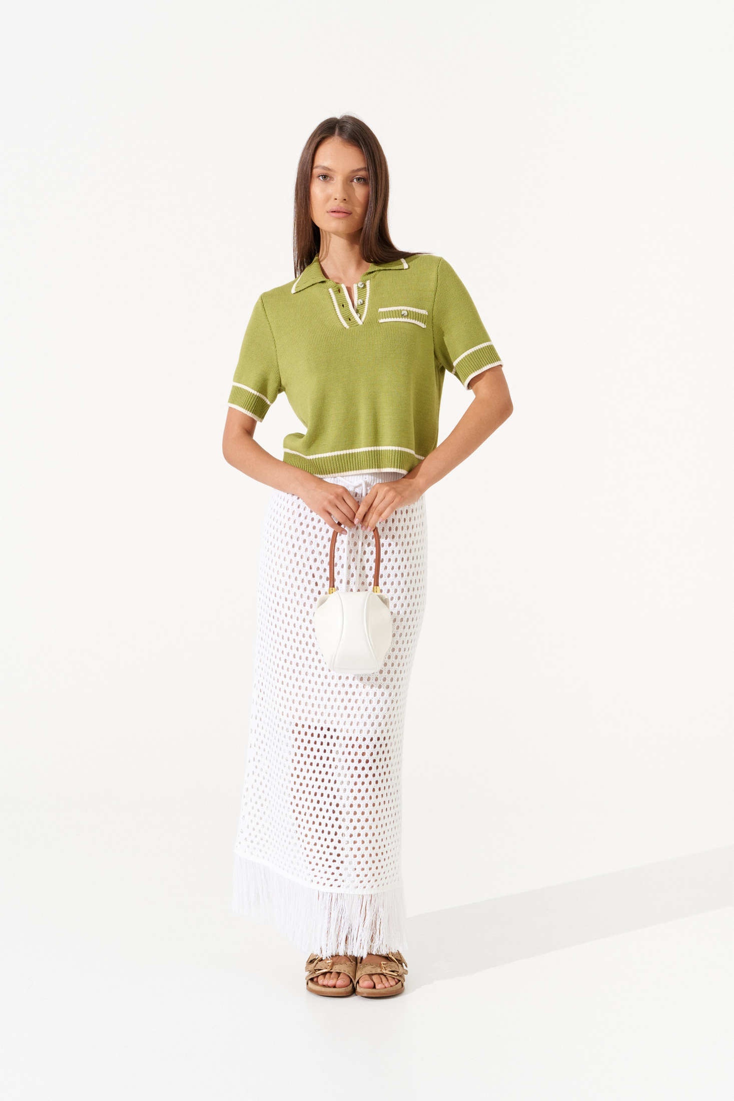 Джемпер РВ0405-ВИ4 олива Romgil. Коллекция бренда Romgil предлагает стильный трикотажный топ с классическим воротником-поло. Изготовленный из мягкого трикотажа, он обеспечивает комфорт и легкость движений. Короткие рукава с контрастными зелеными полосками добавляют оригинальности, а слегка укороченный крой делает модель актуальной для любого сезона. Универсальный и модный цвет золотой оливы с молочным оттенком подходит для создания как повседневных, так и стильных образов.
