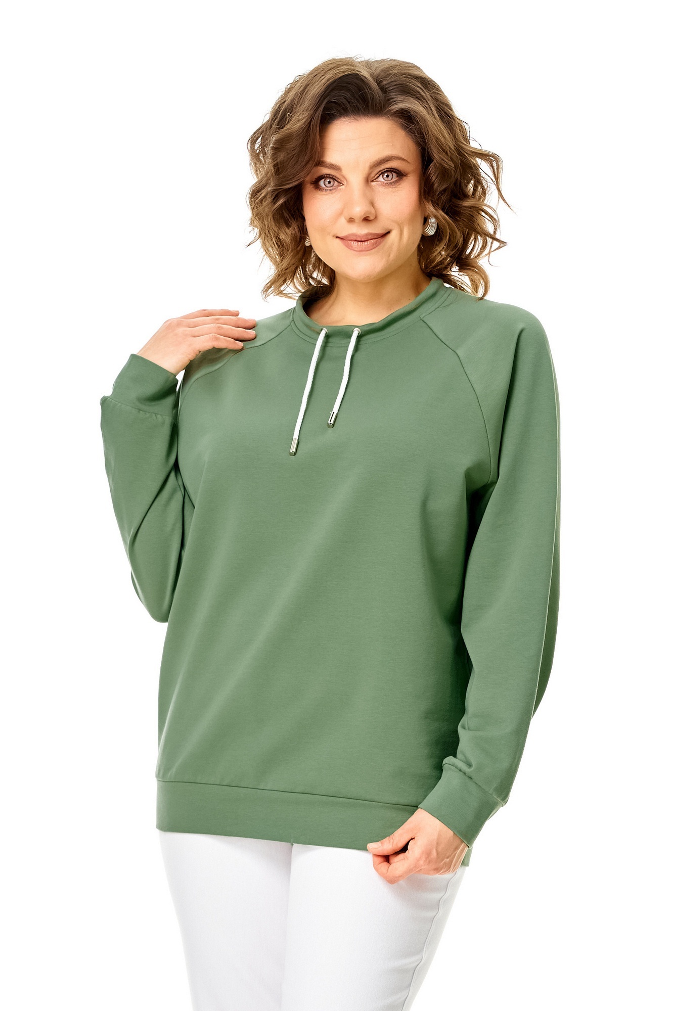 Джемпер 2270 светло-зеленый Rumoda предлагает комфорт и стиль в одном изделии. Коллекция бренда сочетает материал из трикотажной хлопковой двунитки, обеспечивающей мягкость и дыхание вашего тела. Джемпер с длинным рукавом реглан и круглыми манжетами добавляет удобства в повседневные образы. Уникальный декоративный элемент на спинке и притачной пояс делают этот джемпер ещё привлекательнее. Универсальный светло-зелёный цвет подойдёт для любого сезона, будь то осень или весна, и станет отличным дополнением к вашему гардеробу. Длина изделия по спинке составляет 69 см, а рукава — 75 см, создавая идеальный комфорт и посадку.