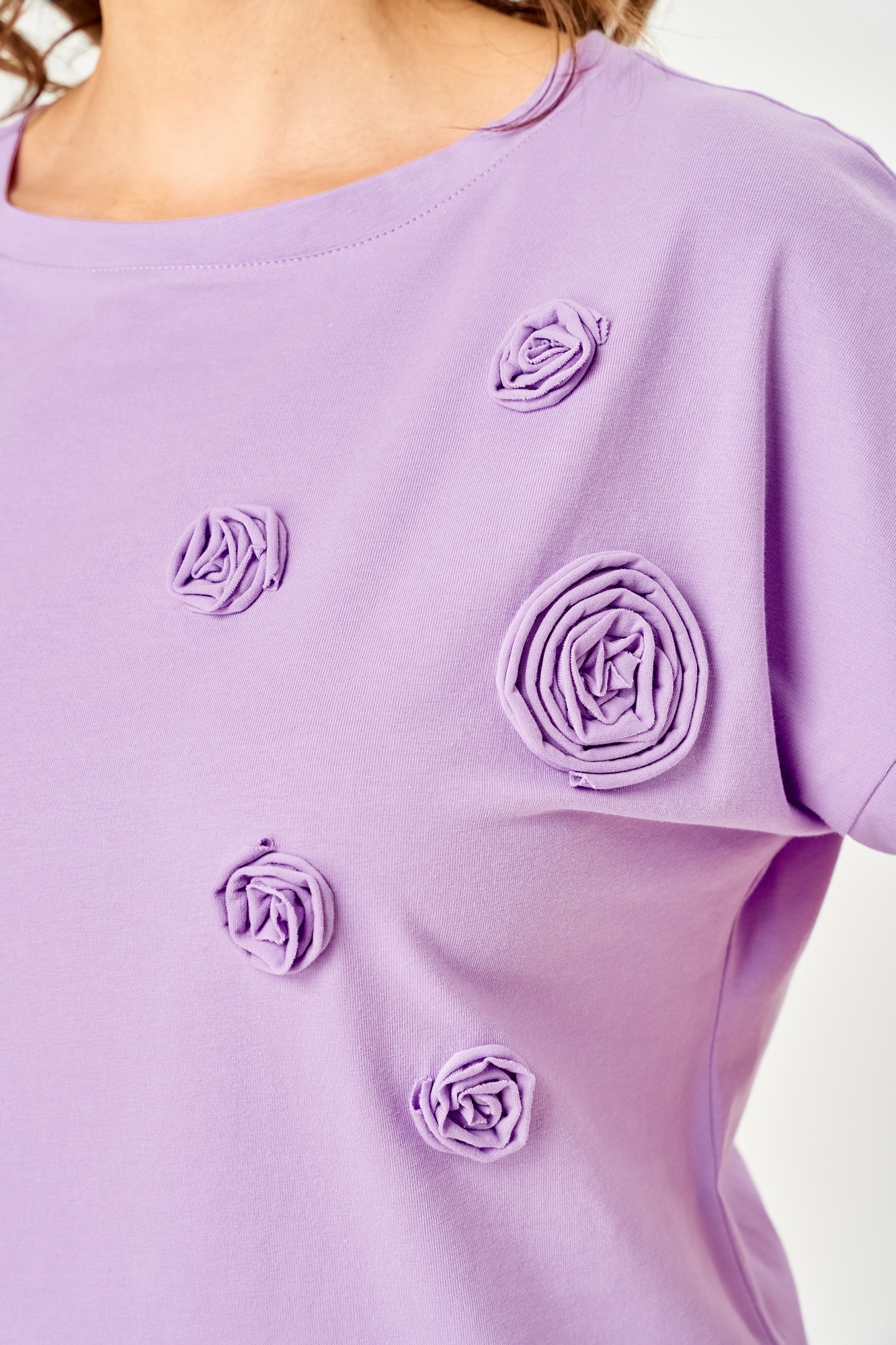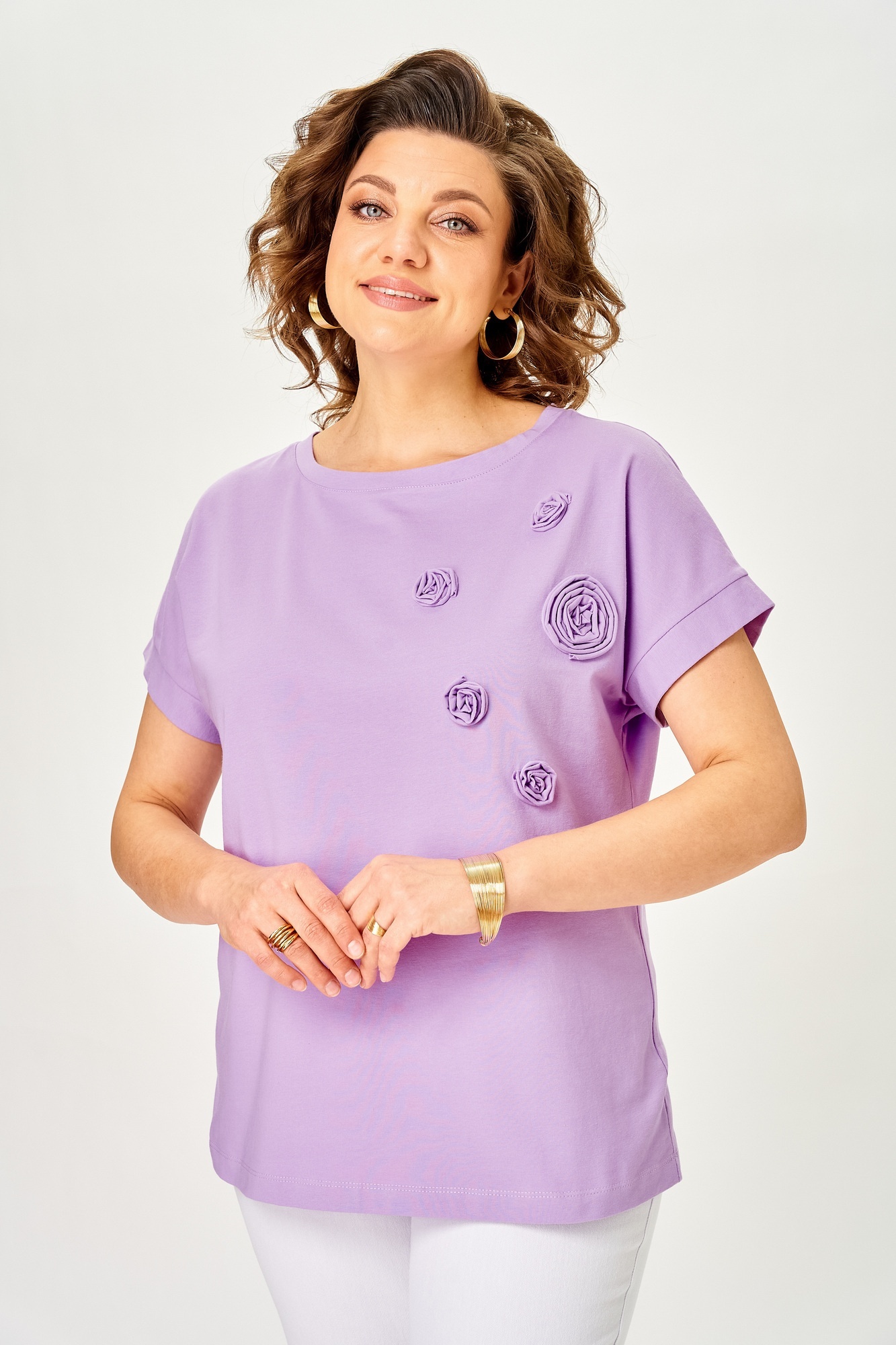 Джемпер 2288 сиреневый Rumoda — идеальное дополнение к вашему гардеробу. Коллекция бренда Rumoda сочетает в себе стиль и комфорт, предлагая джемпер из трикотажной хлопковой ткани, который обеспечивает мягкость и долговечность. Фасон со спущенным плечом и декоративными элементами спереди привлекает внимание, а круглый вырез горловины, оформленный бейкой, добавляет изысканность. Этот джемпер идеально подходит для повседневного ношения в теплое время года благодаря коротким рукавам. Сиреневый цвет подчеркивает свежесть и легкость вашего образа. Промеры на 50 размер включают длину рукава от крайней точки шеи 25,5 см и длину изделия по спинке 62 см, что делает этот джемпер универсальным выбором для любого случая.