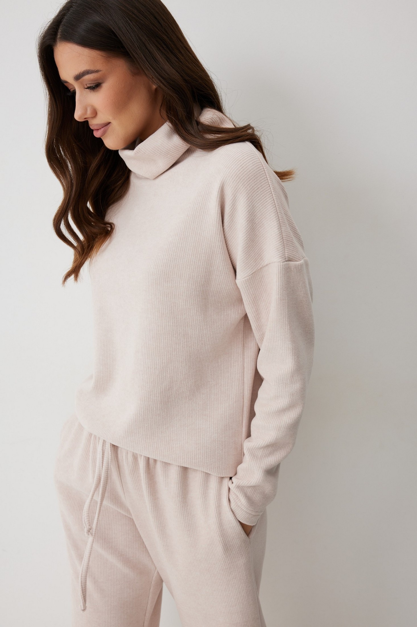 Горловина с высокой воротником - стойкой. Линия плеча спущена. Рукав длинный, чуть зауженный к низу. Этот джемпер без подкладки идеально подходит любых образов и станет вашей любимой вещью для прогулок, путешествий и расслабленных городских выходов.