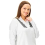 Стильный джемпер в дизайне «Сердце», комбинированный с черный. Свободного силуэта, с декоративными манжетами по горловине и низу рукава. Без застежки. Рукав реглан.