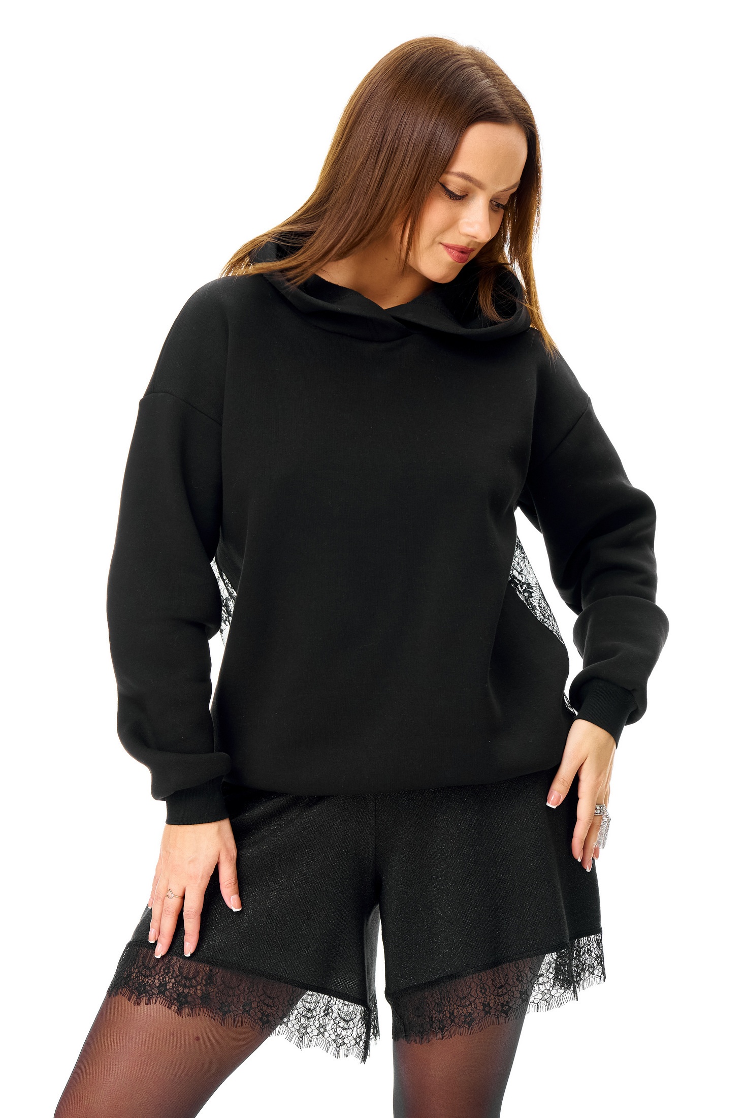 Сочетание нежности и дерзости в одной модели. Это не просто худи, а настоящий арт-объект для вашего гардероба. Мягкий и уютный крой спереди идеально контрастирует с соблазнительной спинкой, украшенной ажурным кружевом.