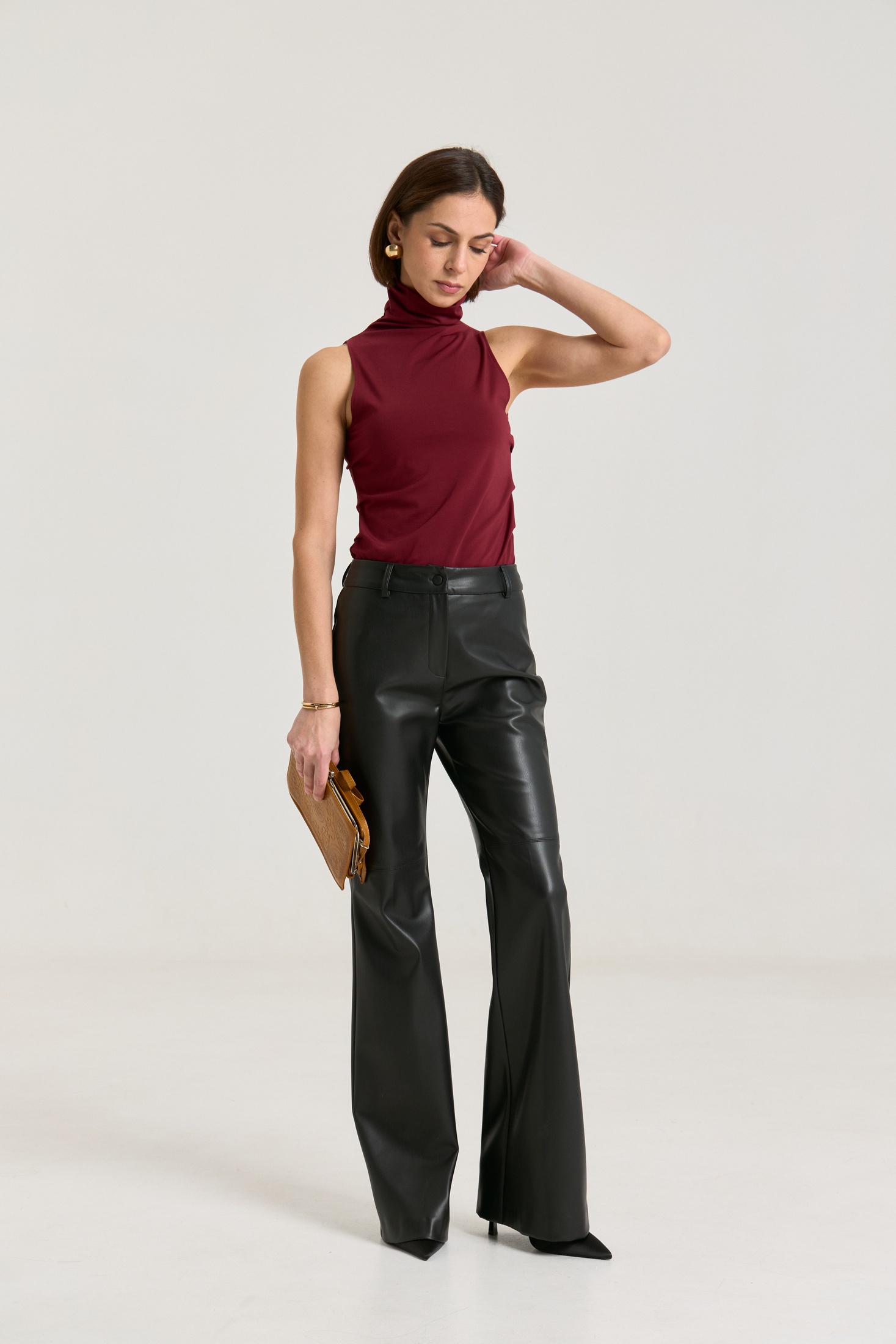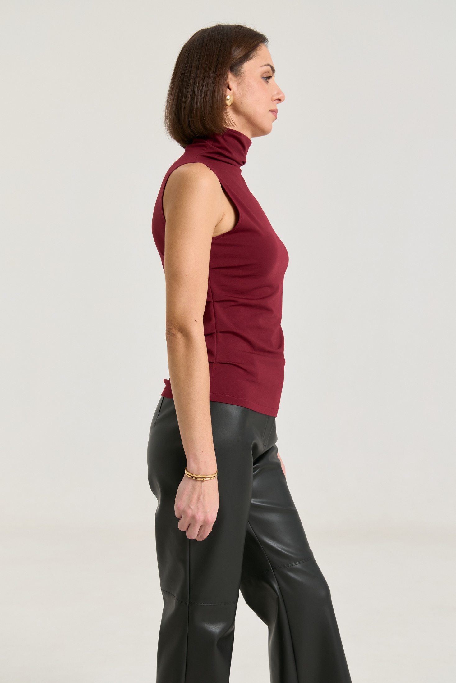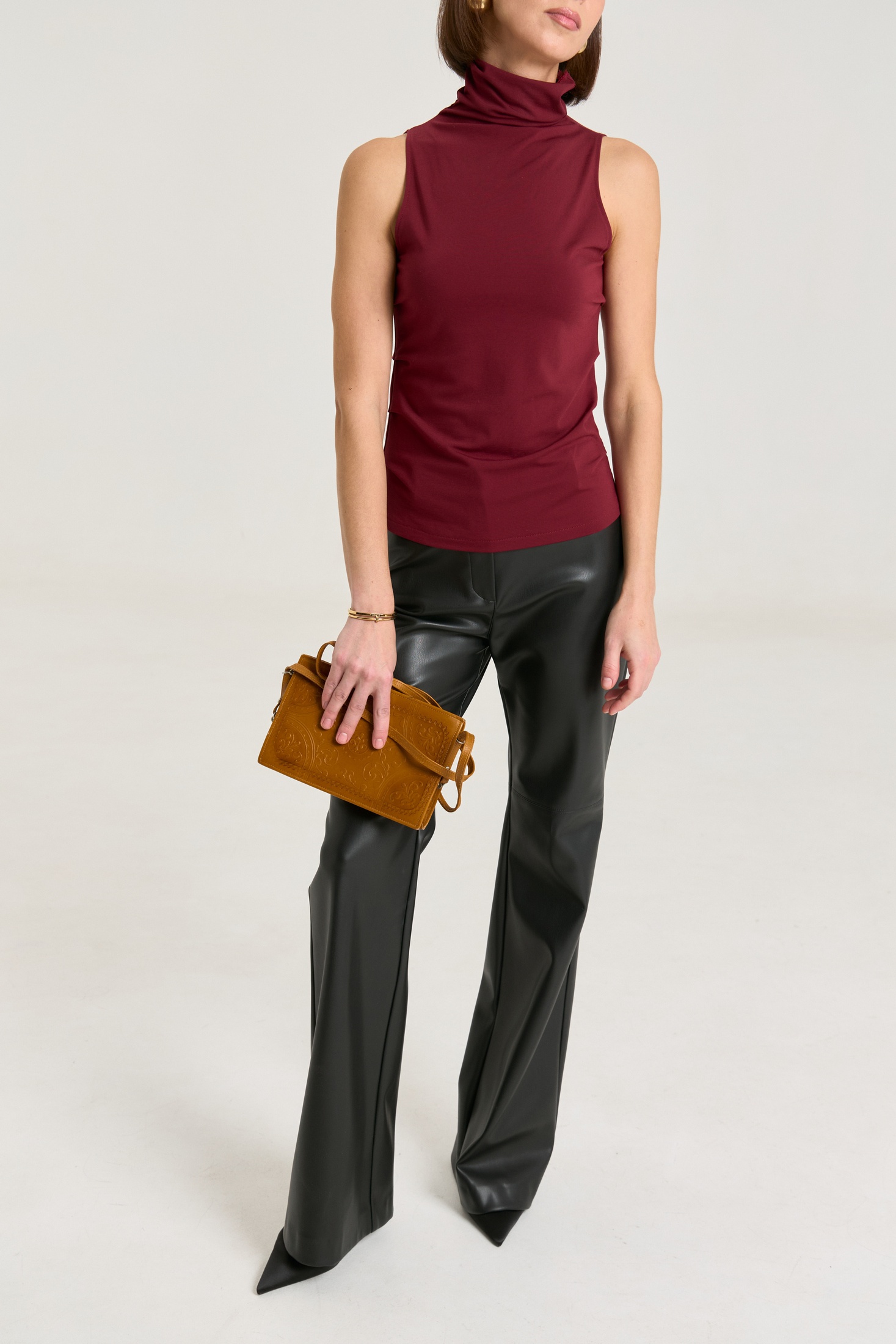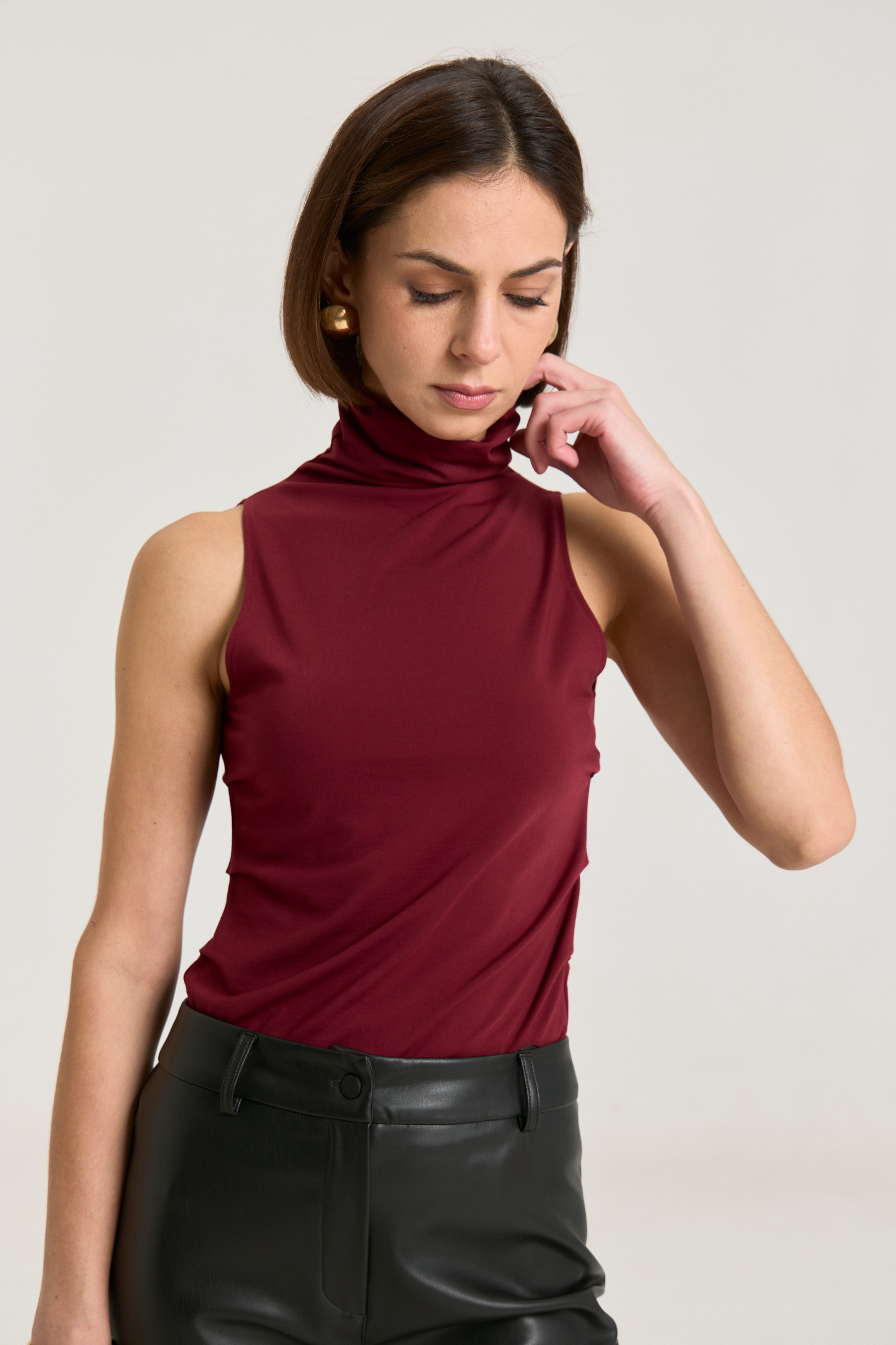 Джемпер выполнен из трикотажной ткани премиального класса, ткань плотная, мягкая, не просвечивает. Горло цельнокроеное высокое, за счет этого можно его драпировать либо носить с подворотом, по бокам защипы, что придает фигуре стройности, за счет красивых линий складок.,длина по спинке 59 см.