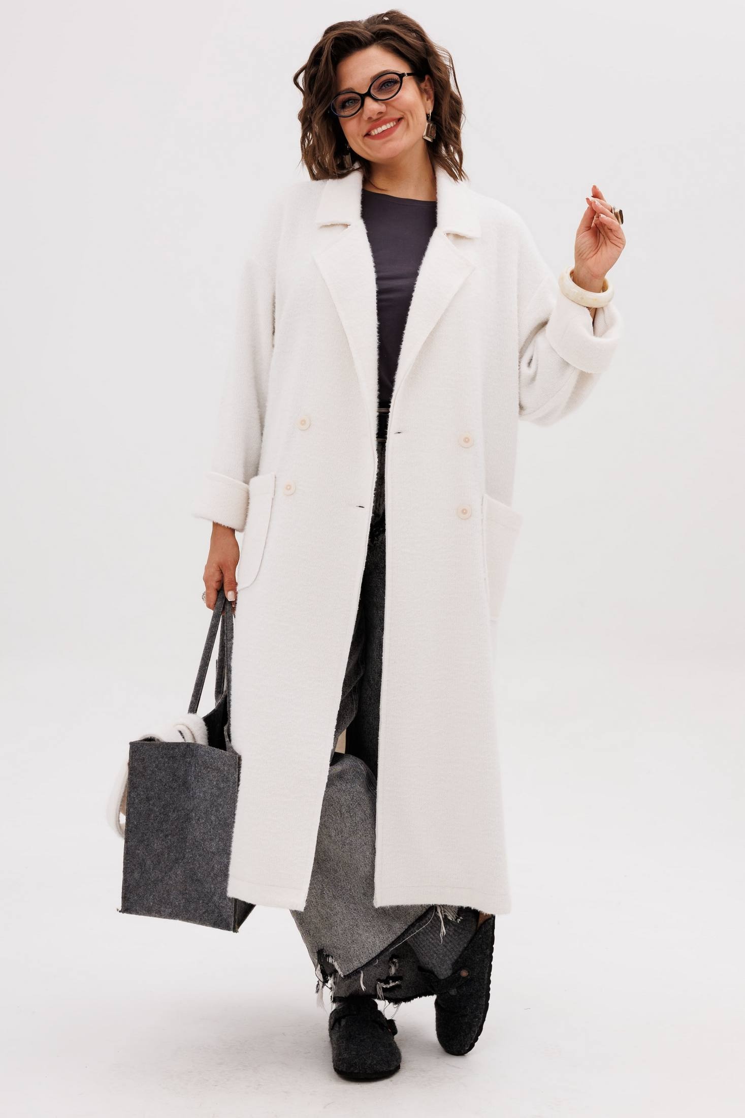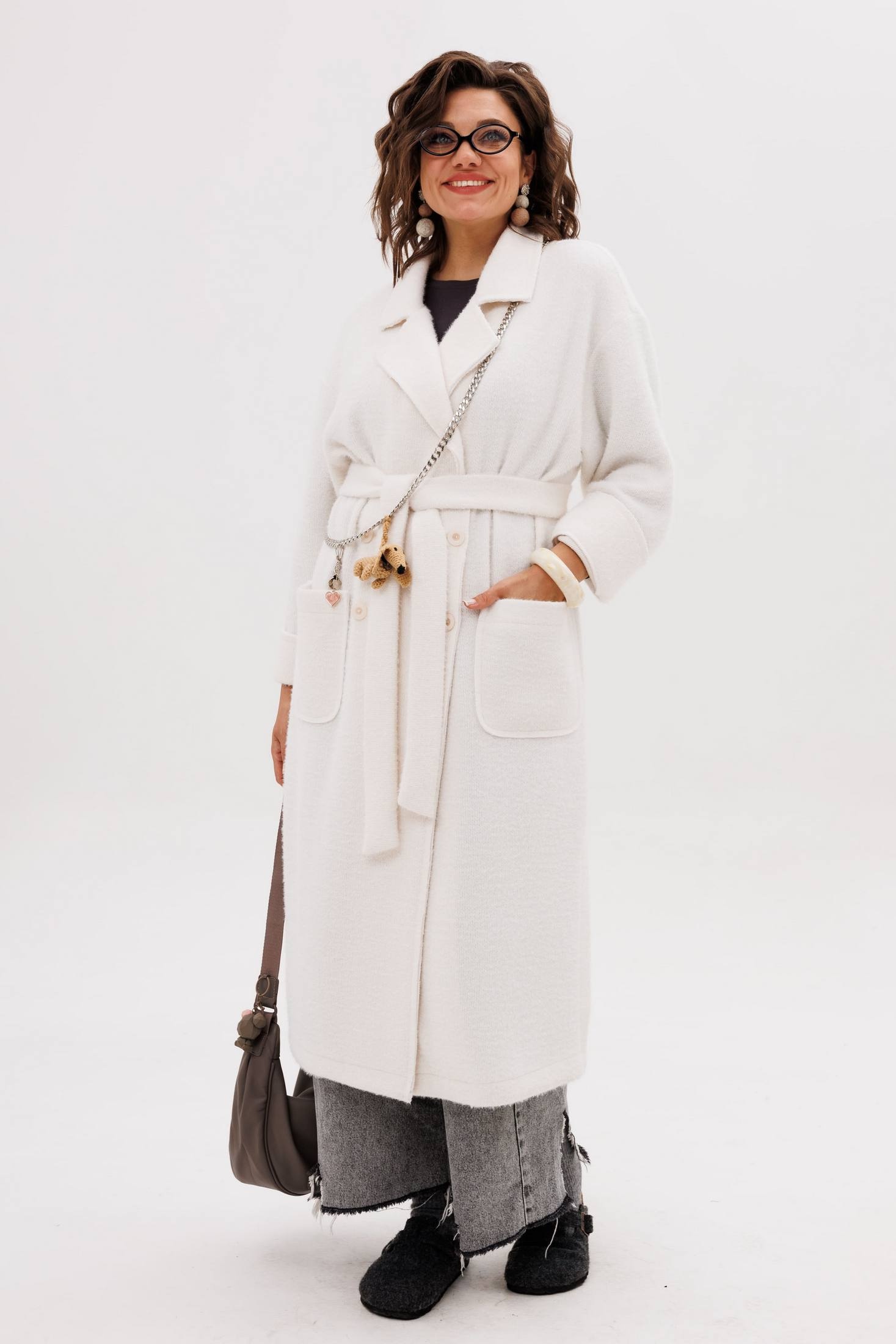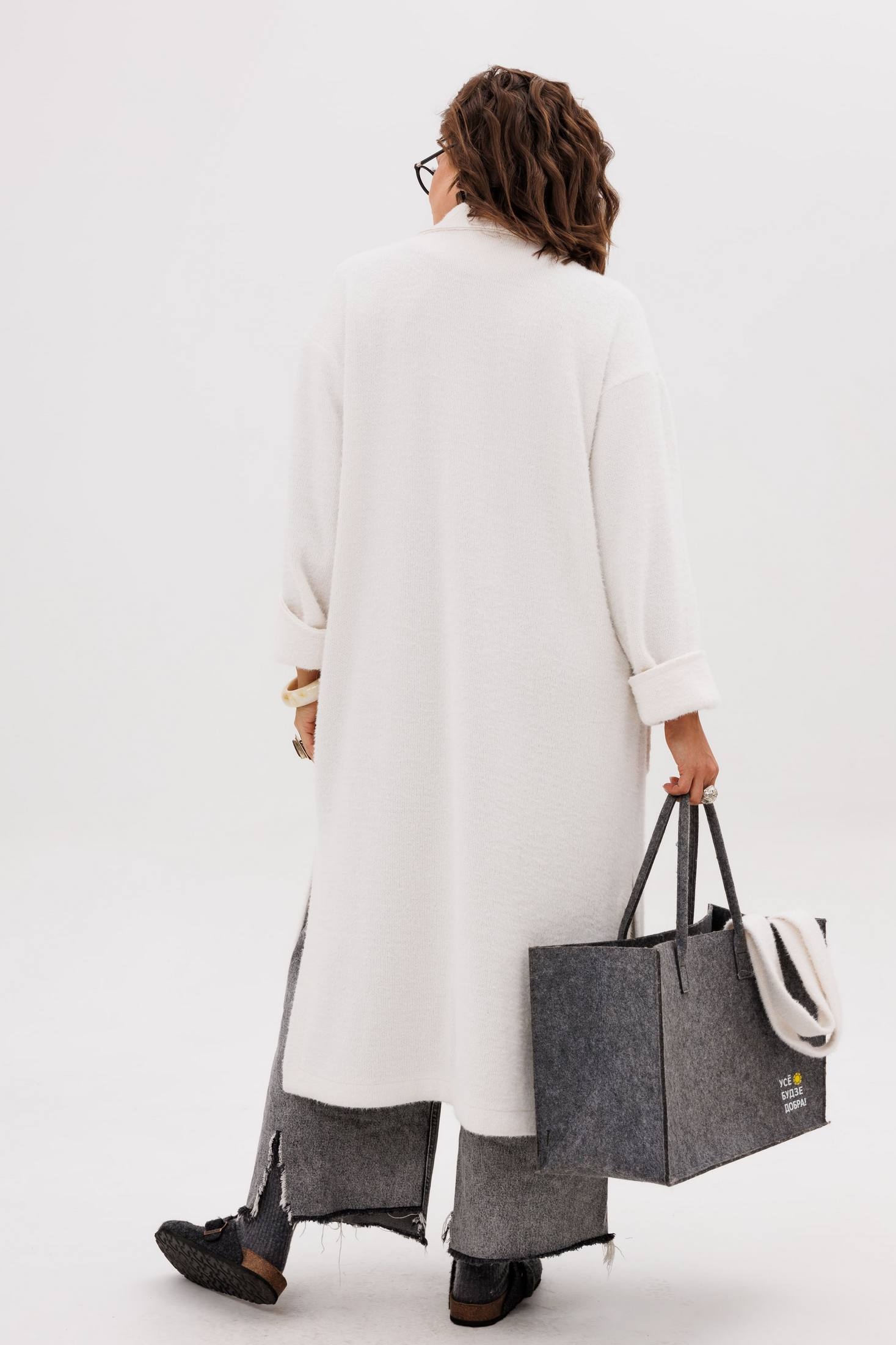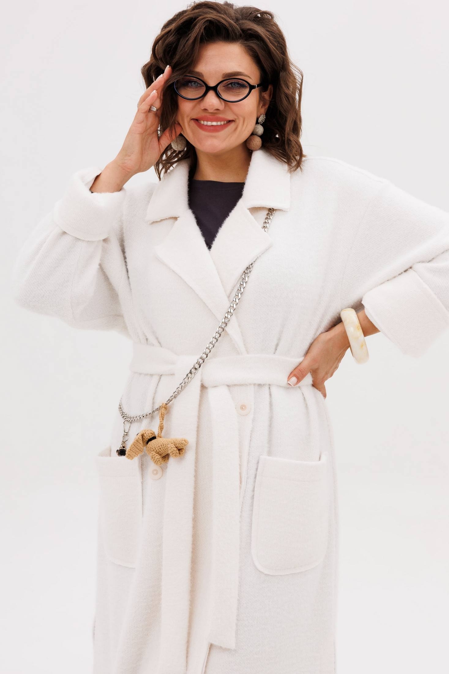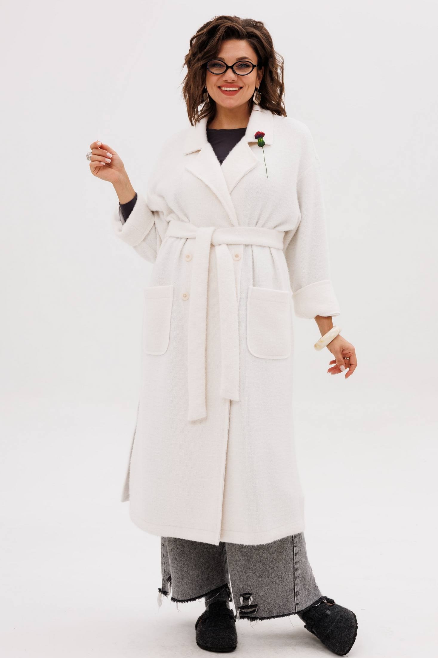 Кардиган 1754 птичье молоко Anelli — это воплощение уюта и элегантности. Коллекция бренда Anelli предлагает мягкий кардиган в оттенке «птичье молоко», выполненный из полиэстера и вискозы, с добавлением эластана. Двубортная застёжка на пуговицы, пояс и накладные карманы делают этот кардиган не только стильным, но и практичным. Прямой силуэт и отложной воротник с лацканами обеспечивают комфорт и расслабленный стиль, а необработанные края и боковые разрезы добавляют современный шарм. Широкие манжеты можно подвернуть для изменения образа. Этот кардиган — идеальный вариант для осенне-зимнего гардероба, когда хочется тепла и мягкости. Длина изделия доходит до 118 см, что позволяет носить его с самыми разными комплектами одежды.