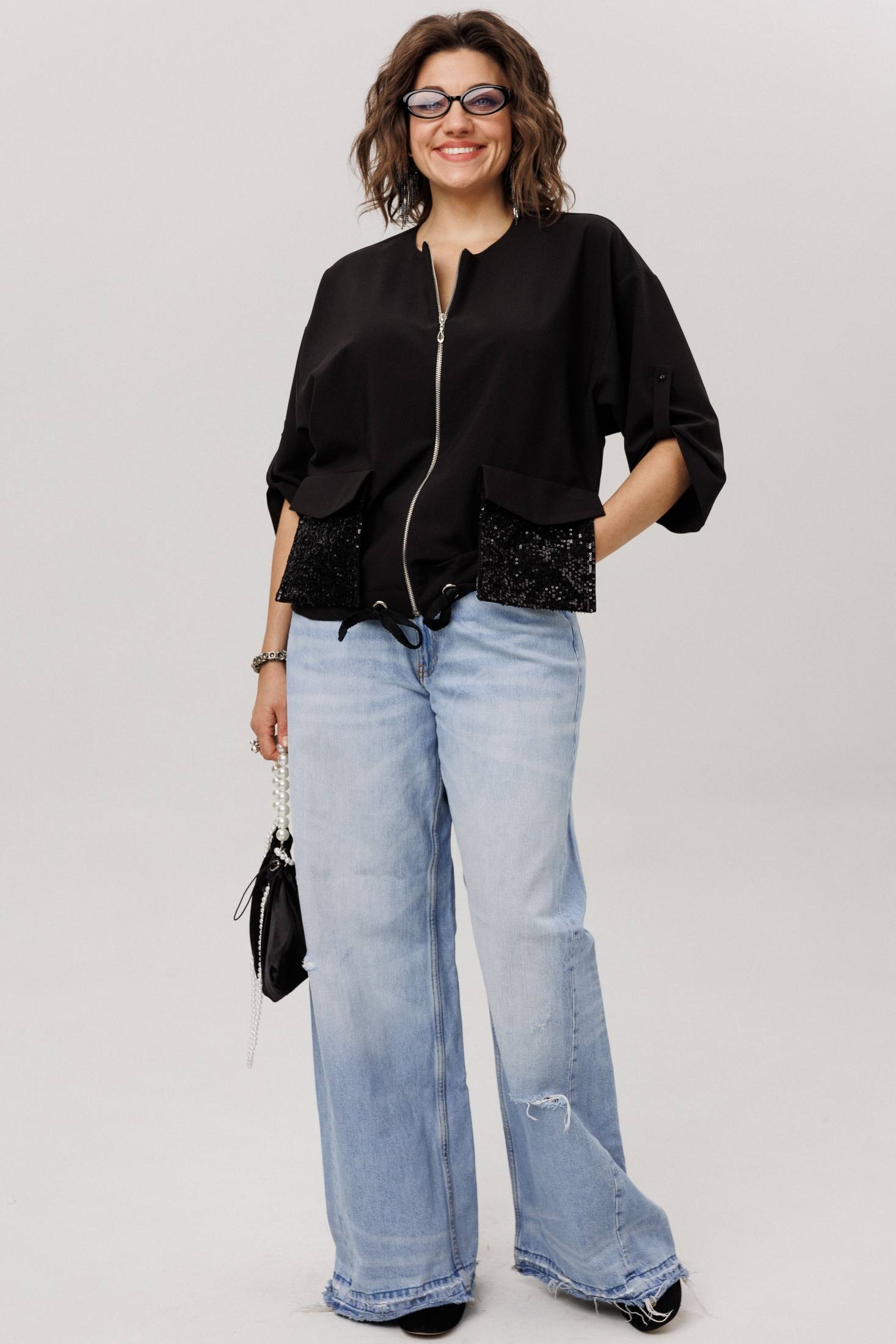 Центральная застёжка-молния добавляет чёткий современный акцент и практичность. Но истинной душой этого джута становятся два объёмных кармана, усыпанных россыпью пайеток: днём они - лишь тактильная фактура, но с приходом вечера пробуждаются, начиная тихую игру со светом, преображая повседневную вещь в предмет для особых моментов. Завершает образ умная деталь - кулиска по низу, позволяющая легко регулировать длину и создавать новый силуэт.