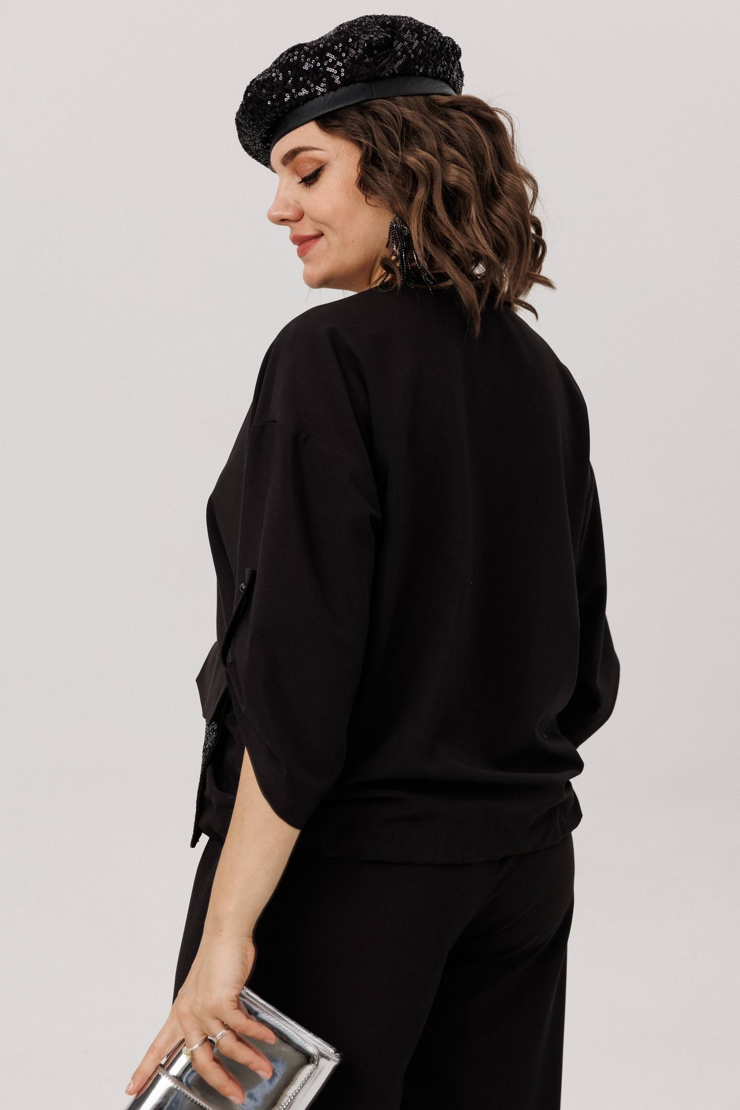 В этом джуте воплощена гармония сдержанной элегантности и современной функциональности. Прямой, ниспадающий силуэт со свободным, воздушным кроем дарит ощущение непринуждённого комфорта. Мягкая линия спущенного плеча плавно перетекает в лаконичный втачной рукав длиной три четверти, чью форму можно изящно зафиксировать на изящную пуговицу через тонкую петлю. Чистый круглый вырез горловины обрамляет лицо, подчеркивая строгость линий, которую лишь дополняют тонкие отделочные клапана.