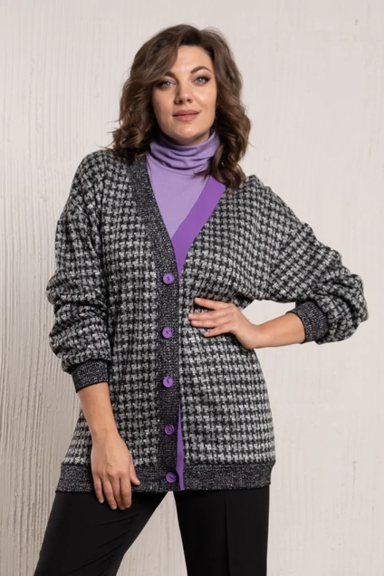 Трикотажный кардиган свободного кроя. Застежка спереди на пуговицы. Длина по спинке 78 см. Рукав втачной на спущенной пройме. Длина рукава полный. Подойдет на рост 164-170 см. Длина 78 см.