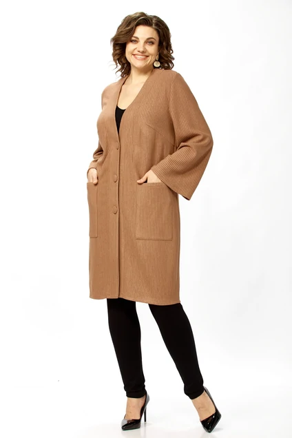 Кардиган 0340-2 AVENUE — это стильное дополнение к вашему гардеробу на осень и зиму. Коллекция бренда AVENUE предлагает кардиган прямого силуэта из нежной вискозы с добавлением полиэстера и полиамида, обеспечивая комфорт и тепло. Длина по спинке составляет 107 см, а длинные рукава имеют длину 61 см и расширяются к низу для выразительности. Модель оснащена практичными накладными карманами и застежкой на пуговицы, что делает её универсальной для повседневной носки. Кардиган выполнен в бежевом цвете, который легко сочетается с другими элементами вашего образа, подчеркивая ваш уникальный стиль.