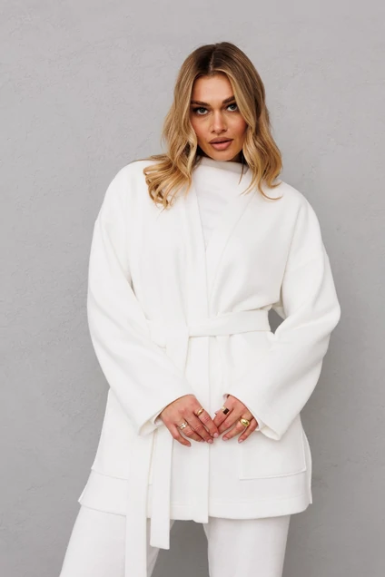 Кардиган прямого силуэта, свободного кроя из мягкой трикотажной ткани средней плотности. Накладные карманы на полочках, на уровне линии бёдер . По борту и горловине притачная планка. В комплекте пояс из основной ткани. Длина по спинке - 82см. Рост модели на фото 173 см. Рекомендуемая температура стирки- не выше 30 градусов.