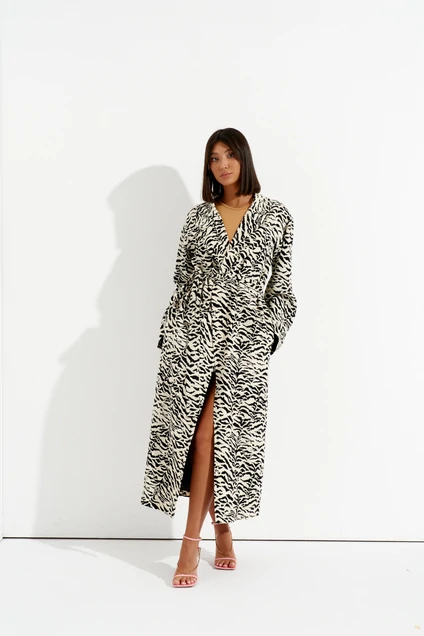 Кардиган прямого свободного кроя выполнен из полотна с контрастным абстрактно - анималистическим принтом. Роскошный, легкий, яркий , стильный подчеркнет Вашу индивидуальность.