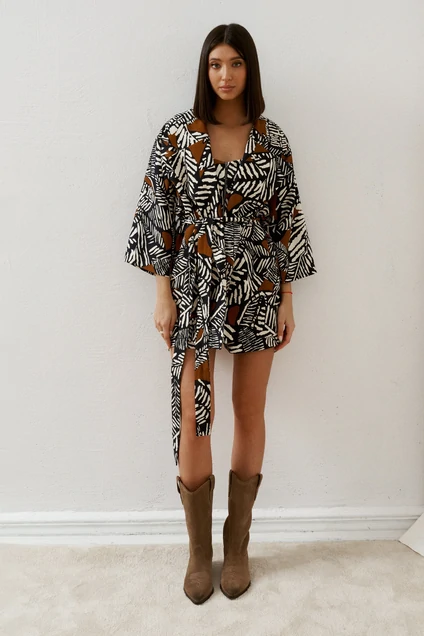 Кардиган прямого свободного кроя выполнен из полотна с абстрактным принтом. Легкий, яркий, стильный кардиган подчеркнет Вашу индивидуальность.