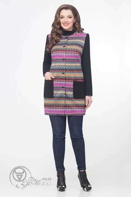 Кардиган женский свободного покроя, с круглым вырезом горловины, с застежкой на пять пробивных кнопок, с накладными карманами, с втачными двухшовными рукавами. Кардиган длиной до линии коленей. Длина кардигана 85-87 см Длина рукава 62-63 см