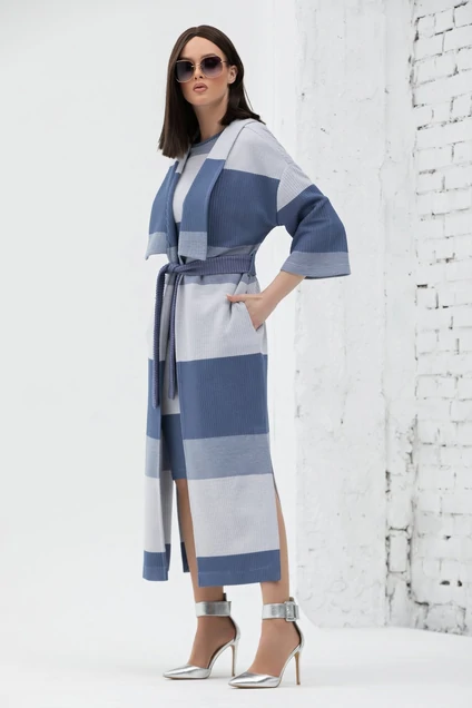 Кардиган на поясе, с отложным воротником. По бокам разрезы. Рукав кардигана 3/4. Без подкладки. Длина 131 см, длина разрезов 60 см