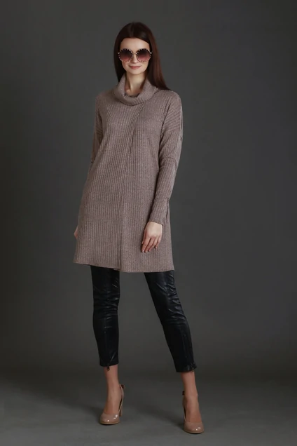 Жакет-кардиган прямого силуэта из трикотажной ткани с нитью люрекса. Перед на запах, горловина – хомут. Рукав спущенный узкий. По переду втачаны прорезные карманы.