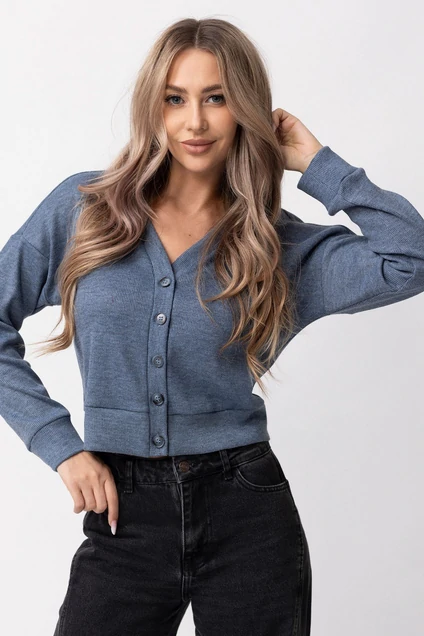 Кардиган прямого силуэта, с центральной застежкой на петли и пуговицы по планке, без воротника с V-образным вырезом горловины. Плечо спущенное. По низу кардигана отрезной пояс. Рукав втачной, длинный, с отрезной манжетой.