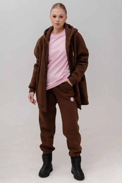 Жакет женский (худи zip)из трикотажного полотна с ворсом, с центральной застежкой на молнию,рукав со спущенной линией плеча,притачной манжетой по низу,капюшон и карманы .