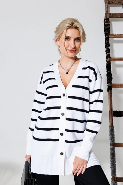 Вязанный кардиган из полушерсти. По переду выполнена застежка на пуговицы. По боковым расположены разрезы. Модель удлиненная. Беспроигрышный вариант для осенней погоды. Его можно носить с брюками, джинсами или леггинсами. Универсальный кардиган который прослужит вам много сезонов, и всегда будет актуальным. Кардиган выполнен из итальянской пряжи, с энзимной обработкой, благодаря этому он не колется и очень приятный на ощупь.