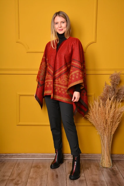 Пончо считаются отличной альтернативой кардигану или пуловеру. Особенностью пончо считается свободный крой, подразумевающий удобство и комфорт в ношении. С его помощью легко корректируется фигура, подчеркиваются достоинства и скрываются недостатки. Данная модель представляет собой прямоугольник 122см*150см из шерстяного материала типа вареная шерсть.