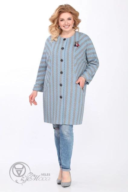 Пальто женское свободного покроя с цельнокройными рукавами,без подкладки. Горловина круглая,застежка центрально-бортовая на петли-пуговицы. Полочки с внутренними карманами в швах рельефов. Спинка с рельефами и средним швом. По рельефам,среднему шву, подгибке низа и рукавам идет отделочная строчка.Длина рукава может регулироваться отложной манжетой. Длина пальто 85,5 см, длина рукава 61 см, ширина рукава на уровне низа 17,5 см.