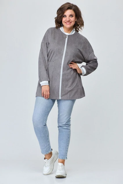 Приталенность силуэта достигается за счет резинки. В боковых швах разрезы.