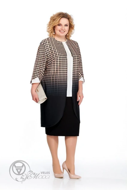 Кардиган из трикотажа. Округлая горловина, застежка на молнию спереди. Спущенная линия проймы. Рукава с фигурным низом длиной 44 см. Верх рукава с заложенной встречной складкой. Борта полочек закруглены. На полочках обработаны вытачки. Спинка простая, длиной 104 см. от вершины плечевого шва. Изделие без подкладки и без плечевых накладок. В боковых швах обработаны карманы.