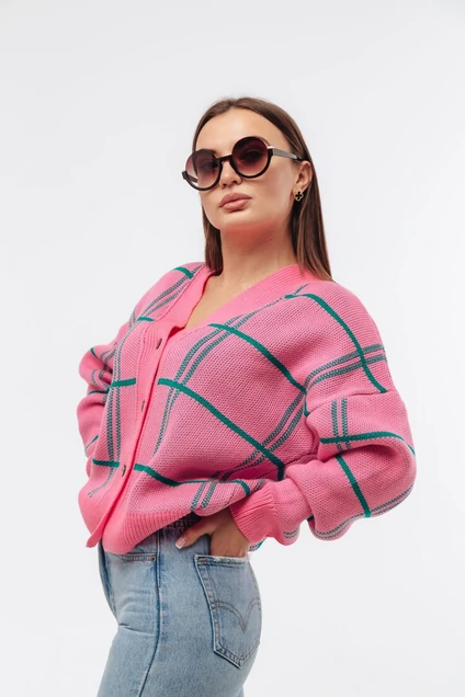 Кардиган ТЗ685П ярко-розовый + изумрудно-зеленый Romgil