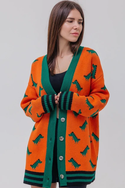 Кардиган 3733Х ярко-оранжевый + изумрудный + черный Romgil