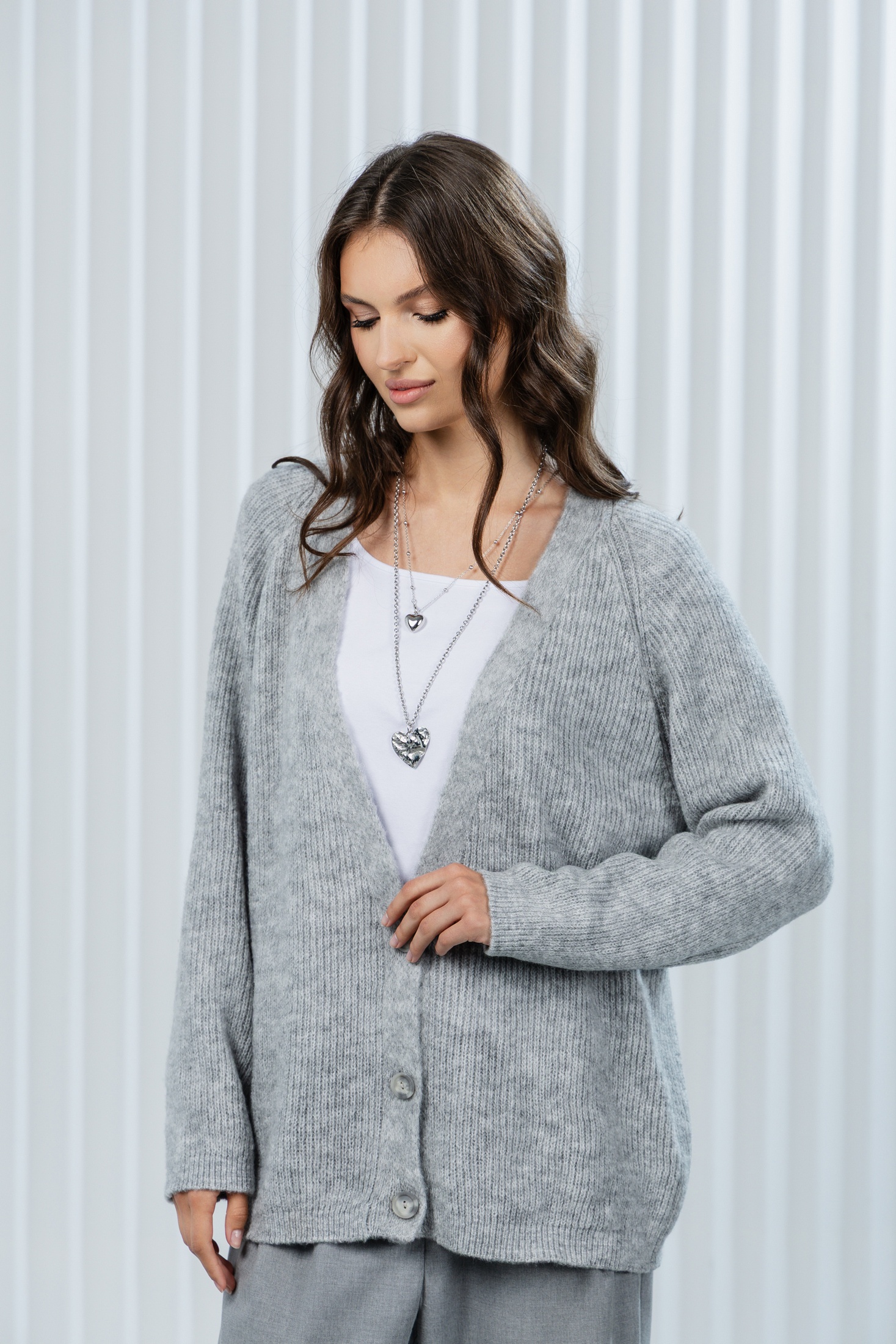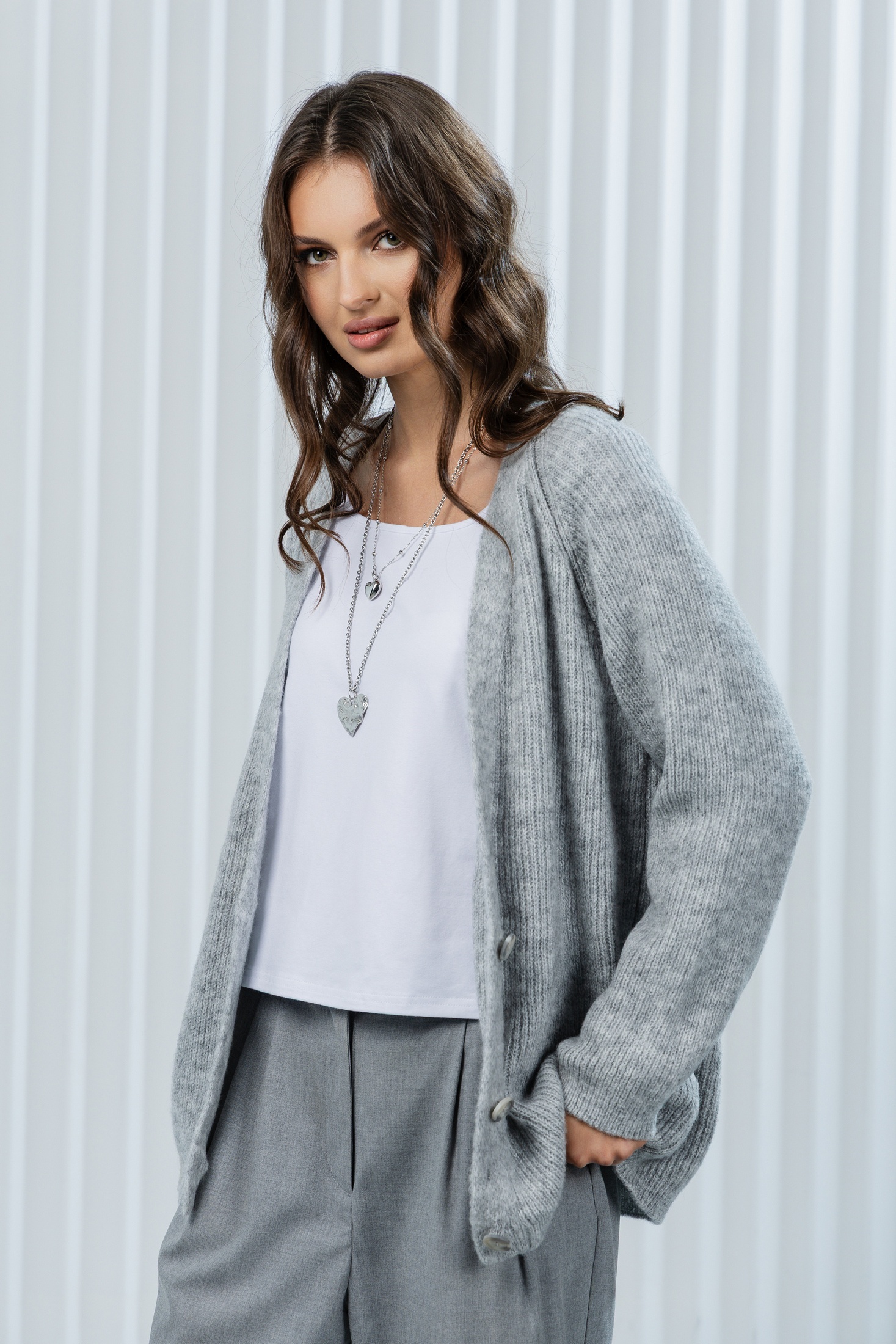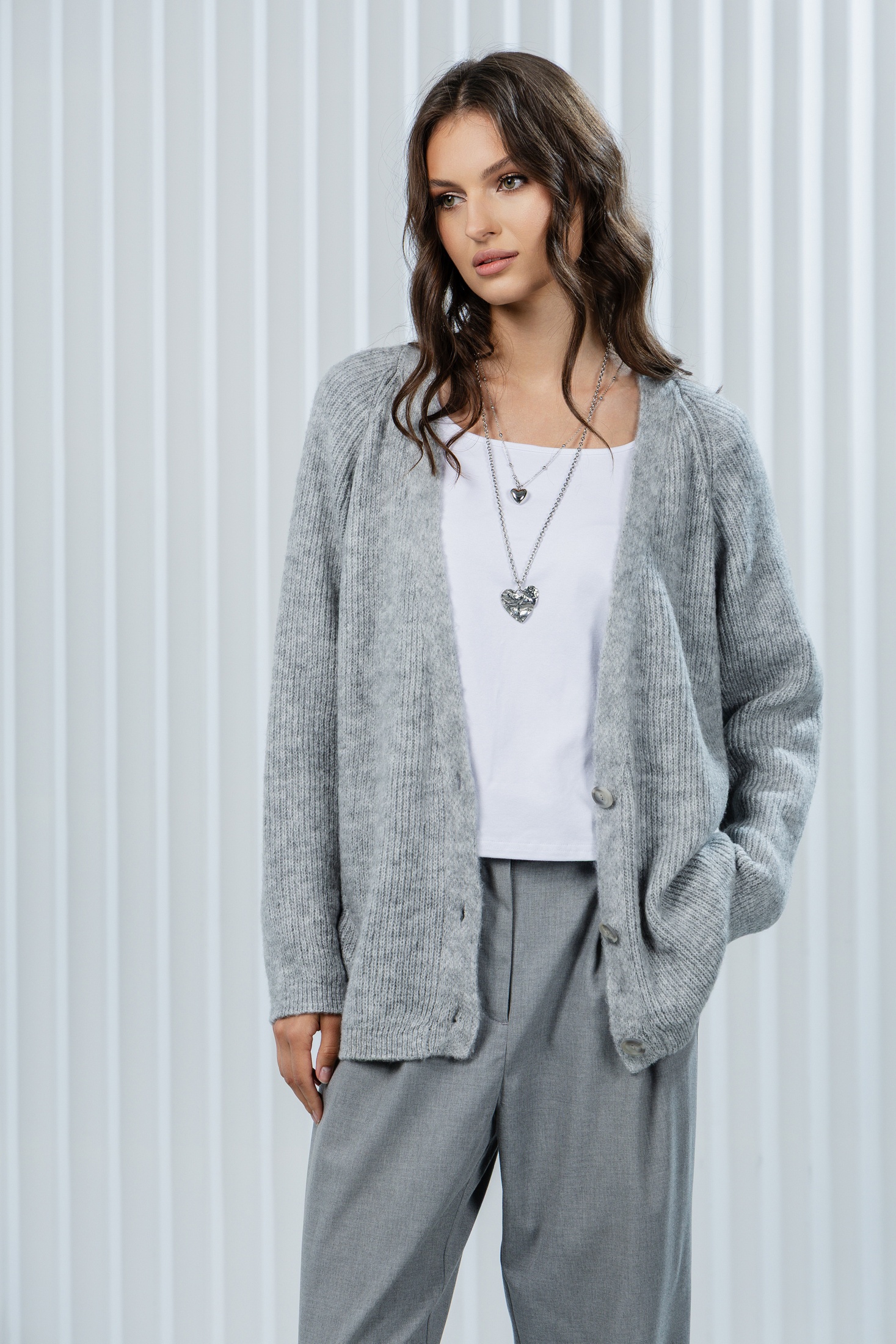 Кардиган РВ0367-АК2 светло-серый Romgil — это идеальное сочетание комфорта и стиля. Коллекция бренда Romgil представлена мягким и дышащим вязаным кардиганом oversize, который станет незаменимой деталью вашего гардероба. Удлинённый крой и пуговицы позволяют варьировать стилизацию, будь то повседневный городской образ или офисный наряд. Светло-серый оттенок легко сочетать с другими цветами, добавляя разнообразие в ваш стиль. Этот кардиган подходит для осенне-зимнего сезона, создавая уют и тепло в прохладные дни. Наденьте его с джинсами или платьем, чтобы создать модный и завершённый образ.