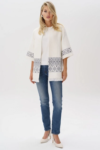 По низу рукава и на уровне линии бедер по кардигану идет вышивка. Средняя длина кардигана по среднему шву спинки - 72,0 см (±3,0 см), Средняя длина рукава - 39,5 см (±2,0 см).Состав подкладки: полиэстер 55%, вискоза 45%