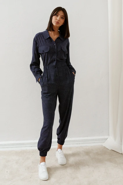 Комбинезон выполнен из нежнейшего вискозного полотна темного цвета с принтом мелкий горох. Комбинезон - яркий стильный образ, подойдет под низкий ход, высокий каблук, кеды.