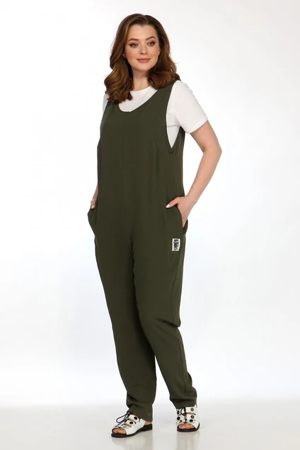 Комбинезон женский свободного силуэта выполнен из хлопковой ткани с добавлением эластана,в боковых швах карманы, по спинке сборка по линии талии на резинку. Длина комбинезона по спинке от плеча 145 см.
