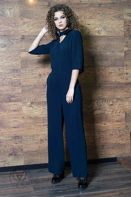 Стиль - это способ сказать, кто ты есть не произнося ни слова. Вашу яркую индивидуальность подчеркнет необыкновенный комбинезон из струящейся ткани. Слегка расширенные брюки с карманами, наклонными к боковому шву, и несколькими вытачками на спине, застегиваются сзади на потайную тесьму-молнию. Лиф полуприлегающего силуэта с нагрудной выточкой и вырезом-чокером. Спинка лифа отлетная с ассиметричным запахом. Рукав втачной, 3/4 длины. Комбинезон застегивается на 2 петли и пуговицу в области горловины. Длина брюк ок.108 см. Длина рукава ок.46 см. Длина лифа по спинке ок.42 см.