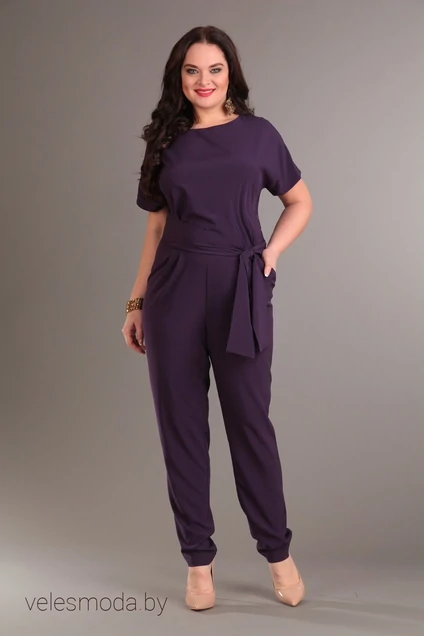Нарядно-повседневный стильный женский комбинезон с цельнокроенными рукавами, отрезной по линии талии, карманы в боковых швах, молния в боковом шве, широкий съемный пояс; по спинке имитация запаха. Длина 156.