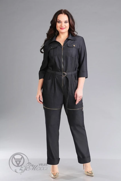 комбинезон, отрезной по талии со втачным рукавами, по переду и по спинке декоративные накладные карманы, по переду застежка-молния, по низу брюк комбинезона манжеты, пояс съемный