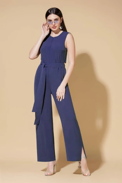 Комбинезон женский, без рукавов. Застежка - потайная молния спереди. Спинка- отлетная. По боковым швам брюк- разрезы.