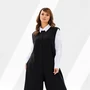 Комбинезон свободного прямого силуэта, выполненный из костюмной ткани (немного тянется). По переду средний шов. По спинке – декоративная металлическая молния в среднем шве. Горловина округлой формы. По