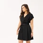 Боковые прорезные карманы добавляют практичности, а V-образная горловина придает образу изысканность. Короткие цельнокроеные рукава делают модель легкой и свежей. Для еще большего облегания в области талии предусмотрен пояс.