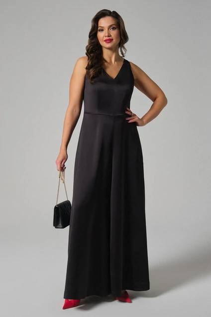 Комбинезон нарядный из костюмной ткани с нарядным блеском модного кроя. Комбинезон без рукавов. Отрезной по линии талии. Брюки расширенные к низу. По спинке застежка на одну потайную пуговицу. Разрез, переходящий в застёжку на потайную молнию. В этом наряде вы будете красивы и грациозны! Наряд с максимальным комфортом.