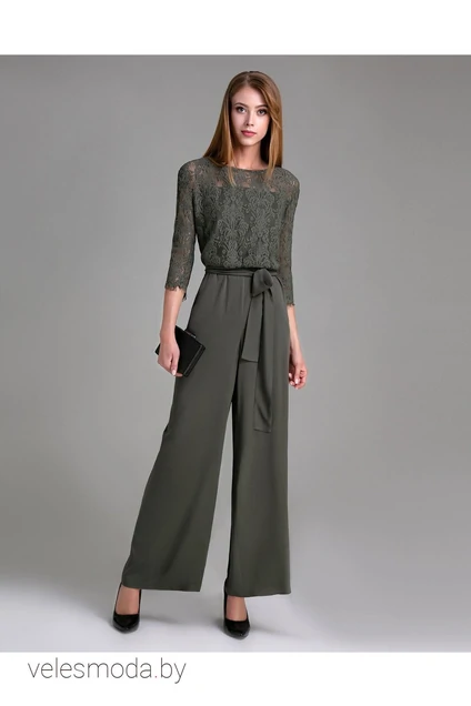 Стильный и очень эффектный варядный нарядный комбинезон,выполненый из двух видов тканей одного цвета.Комбинезон отрезной по талии .В рез оформлена резинка.Брюки свободного силуэта расширенного книзу.В боковых швах оформлены внутренние карманы. Лиф спереди двойной,кружево наложено на однотонную ткань.На уровне кокетки по переду и спинке один слой кружева.Спинка однотонная со средним швом.В среднем шве выполнен глубокий разрез,который фиксируется при помощи двух петель и пуговиц на ножке.Рукав втачной ,расширенный книзу.Низ рукава ажурный. На талии расположен пояс,который завязывается спереди. В боковом шве оформлена потайная молния. 40 Комбинезон: Высота посадки - 29,5см, Длина брюк - 108см, Длина по внутреннему шву - 79см, Длина рукава - 42см, Длина спинки - 40,6см, Ширина брючин сверху - 62см, Ширина брючин по низу - 65см, Ширина плеча - 9,6см, Ширина по бедрам - 47см, Ширина по груди - 46см, Ширина рукава - 14,8см 42 Комбинезон: Высота посадки - 30см, Длина брюк - 108см, Длина по внутреннему шву - 79см, Длина рукава - 42см, Длина спинки - 40,8см, Ширина брючин сверху - 64см, Ширина брючин по низу - 65,5см, Ширина плеча - 9,8см, Ширина по бедрам - 49см, Ширина по груди - 48см, Ширина рукава - 15,4см 44 Комбинезон: Высота посадки - 30,5см, Длина брюк - 108см, Длина по внутреннему шву - 79см, Длина рукава - 42см, Длина спинки - 41см, Ширина брючин сверху - 66см, Ширина брючин по низу - 66см, Ширина плеча - 10см, Ширина по бедрам - 51см, Ширина по груди - 50см, Ширина рукава - 16см 46 Комбинезон: Высота посадки - 31см, Длина брюк - 108см, Длина по внутреннему шву - 79см, Длина рукава - 42см, Длина спинки - 41,2см, Ширина брючин сверху - 62см, Ширина брючин по низу - 66,5см, Ширина плеча - 10,2см, Ширина по бедрам - 53см, Ширина по груди - 52см, Ширина рукава - 16,6см 48 Комбинезон: Высота посадки - 31,5см, Длина брюк - 108см, Длина по внутреннему шву - 79см, Длина рукава - 42см, Длина спинки - 41,4см, Ширина брючин сверху - 64см, Ширина брючин по низу - 70см, Ширина плеча - 10,4см, Ширина по бедрам - 55см, Ширина по груди - 54см, Ширина рукава - 17,2см