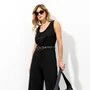 Комбинезон женский приталенного силуэта, отрезной по талии, брюки свободные с боковыми карманами. В боковых швах высокие открытые шлицы, изящно подчеркивающие ноги. По переду нагрудные вытачки. Спинка с вытачками и застежкой на потайную тесьму молнию по среднему шву. Вырез горловины округлый. Практичный и удобный комбинезон выполнен из льняного полотна. Дополнением служит съемный пояс-шнур с золотыми наконечниками. Идеальный вариант комбинезона для выходного дня и неформального стиля, поможет выглядеть стильно и элегантно, при этом чувствуя себя свободно, легко и комфортно на любом торжестве и мероприятии. Длина изделия по среднему шву спинки 149 см. Длина брюк от талии по боковому 110 см.