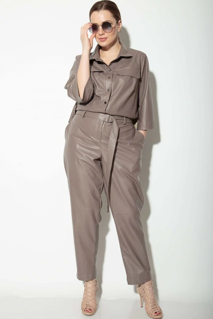 Можно ли быть стильной в большом размере!? Смело отвечаем, можно! Это отличный вариант для офиса и для прогулки с подругами. Комбинезон выполнен из экокожи на хлопковой основе. Отрезной по линии талии с отлетной по спинке, в пояс по спинке вставлена резинка, есть съемный пояс.