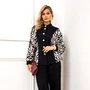 Стильный комплект, состоит из блузы и брюк. Блуза полуприлегающего силуэта, выполнена из высококачественной трикотажной ткани, рукав и бочек выполнены из атласной ткани с модным дизайнерским принтом. Блуза с горловиной стойкой и застёжкой по переду на пуговицы. Рукав полной длины, выполнен в стиле летучая мышь, с манжетой из однотонного трикотажа. На талии по бокам блуза с резинкой. Все элементы блузы создают неповторимый образ, модель невероятно стройнит. Брюки выполнены из высококачественного трикотажа, на поясе, по спинке на резинке, по переду с застежкой на пуговицу и молнию. В боковых швах брюк функциональные карманы. По бокам брюк снизу шлица, декорированная пришивными пуговицами.