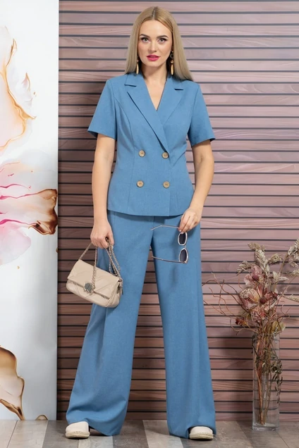 Жакет женский полуприлегающего силуэта, с двух-бортной застёжкой на петли, пуговицу и с внутренней застёжкой на потайную петлю и пуговицу.