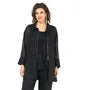 Блузон прямого свободного силуэта, понизу с притачным поясом, двухслойный: нижняя часть (выполнена из трик. полотна) без рукавов, верхняя часть с небольшим напуском понизу, с углубленной проймой и мягкими складками по центру горловины. Рукава, втачные расширенные понизу декорированы отделочной тесьмой.