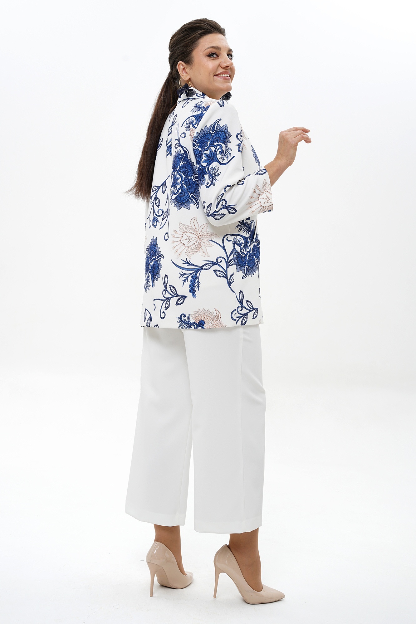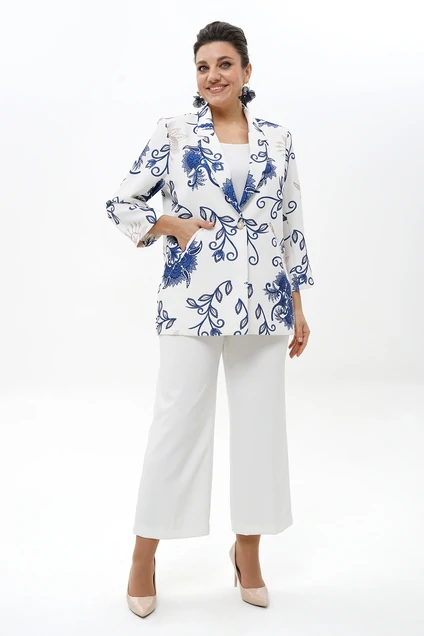 Костюм брючный 2500 бело-синий ALANI — это стильное и практичное решение для вашего гардероба. Коллекция бренда ALANI сочетает в себе элегантный фасон и комфортные материалы. Жакет прямого силуэта с отложными лацканами и прорезными карманами создаёт образ для офиса или вечернего выхода. Блуза полуприлегающего силуэта и брюки 7/8 на притачном поясе дополняют комплект. Изготовленный из полиэстера и спандекса, костюм обеспечивает лёгкость и комфорт. Идеален для весенне-летнего сезона благодаря своему насыщенному бело-синему оттенку с цветочным узором. Этот комплект сыграет ключевую роль в создании как делового, так и расслабленного образа.